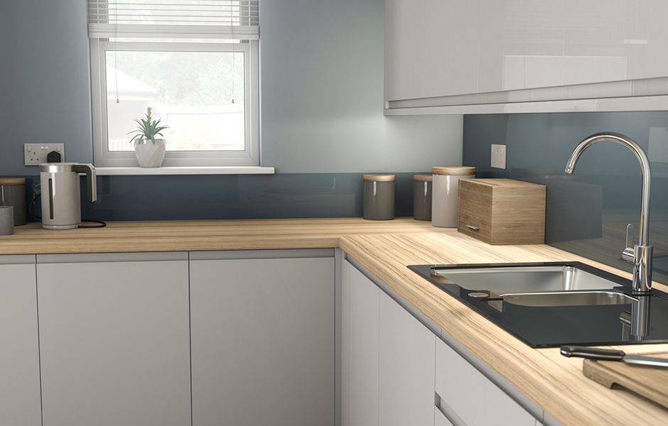 Marletti Dove Grey. On trend with sleek high gloss fascias and ergonomic streamlined handleless doors and drawers. Perfect for teaming up with stainless steel appliances and accessories.