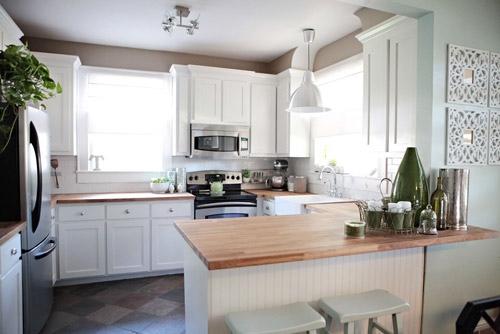 white cabinets with butcher block countertops | love it ...